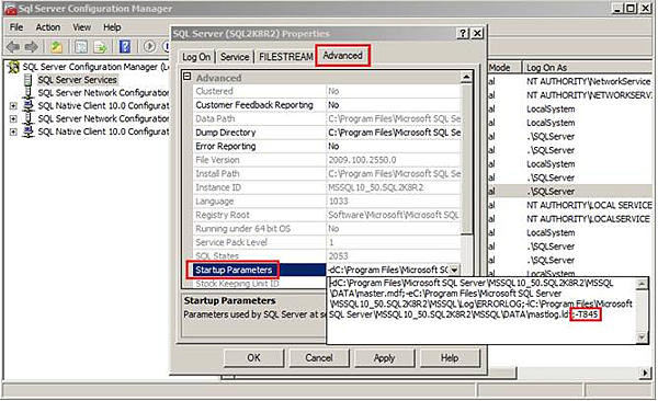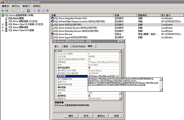 使用 SQL Server 組態管理員調整 SQL Server 啟動的參數,於原本的參數之後,再加入如下的參數: