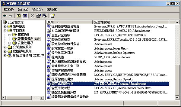 2)為了避免 SQL Server Process 被強迫釋放,請您依據以下的作法進行設定[鎖定記憶體分頁] 權限: