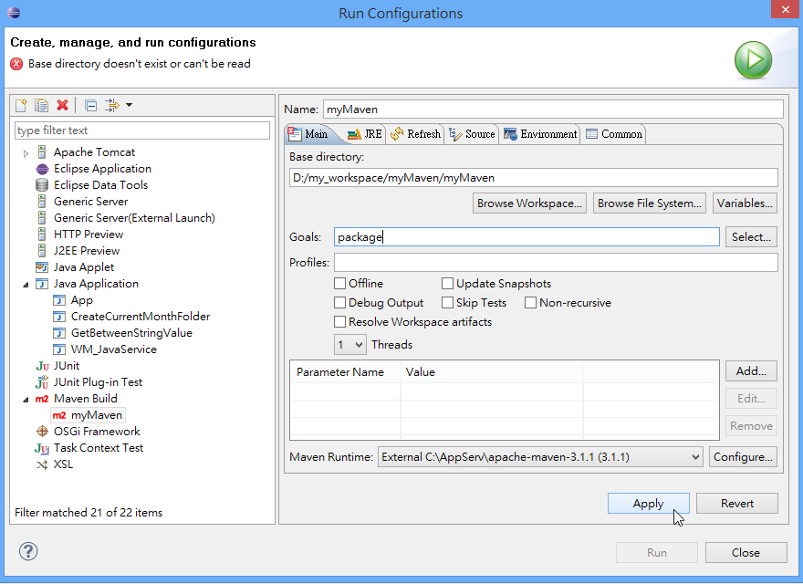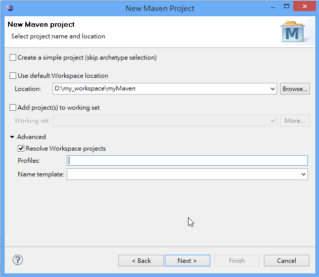 把專案程式放在 D:\my_workspace\myMaven 目錄下