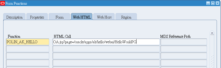 HTML Call:OA.jsp?page=/oracle/apps/ak/hello/webui/HelloWorldPG