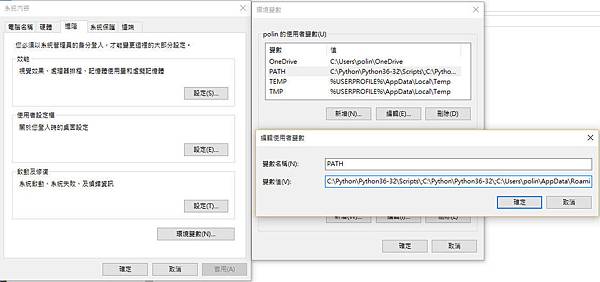 先下載 Python 3.6.1 安裝在 C:\Python\Python36-32 然後增加 Path